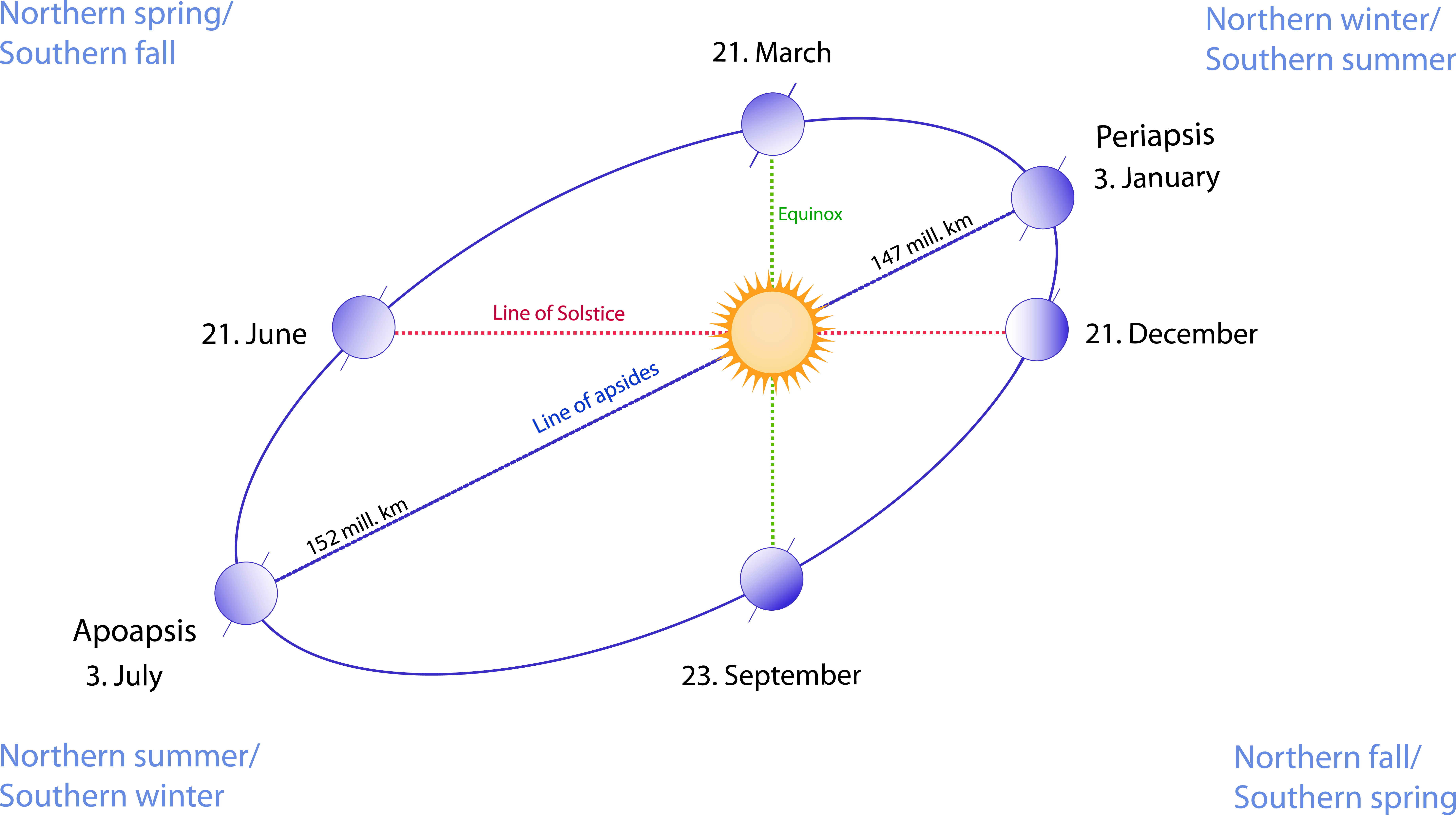 Earth orbits the Sun at an average distance of about 150 million km (93 million mi) every 365.2564 mean solar days, or one sidereal year. This gives an apparent movement of the Sun eastward with respect to the stars at a rate of about 1°/day, which is one apparent Sun or Moon diameter every 12 hours. Due to this motion, on average it takes 24 hours—a solar day—for Earth to complete a full rotation about its axis so that the Sun returns to the meridian. The orbital speed of Earth averages about 29.78 km/s (107,200 km/h; 66,600 mph), which is fast enough to travel a distance equal to Earth's diameter, about 12,742 km (7,918 mi), in seven minutes, and the distance to the Moon, 384,000 km (239,000 mi), in about 3.5 hours.