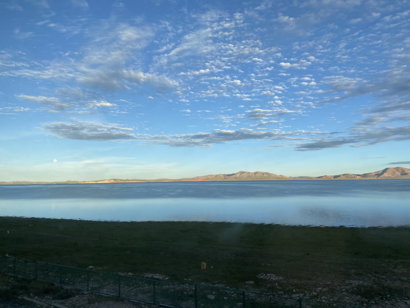 一觉醒来已经是2020年9月3日了,还没起床就听见有人说昨晚12点多火车经过唐古拉山山口,夜景中昆仑山非常的雄伟和壮观,火车早上还经过那曲、当雄、羊八井等车站(后来我们自驾环线时,这些名字和地方我们有去吃饭的,住宿的,还有开车匆匆经过的)。