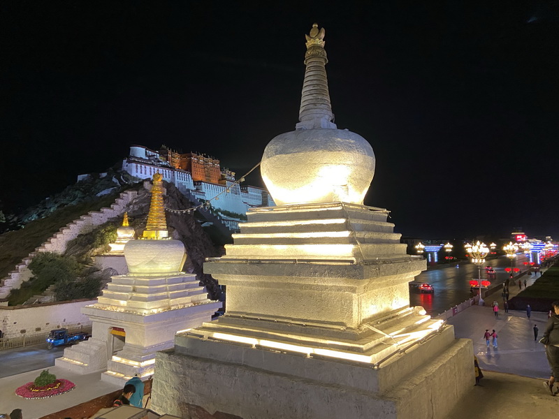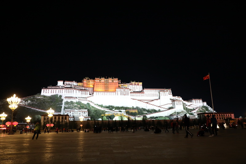在酒店整理和休息后,在下午8点多天还没有黑,我们出发去夜游布达拉宫广场。