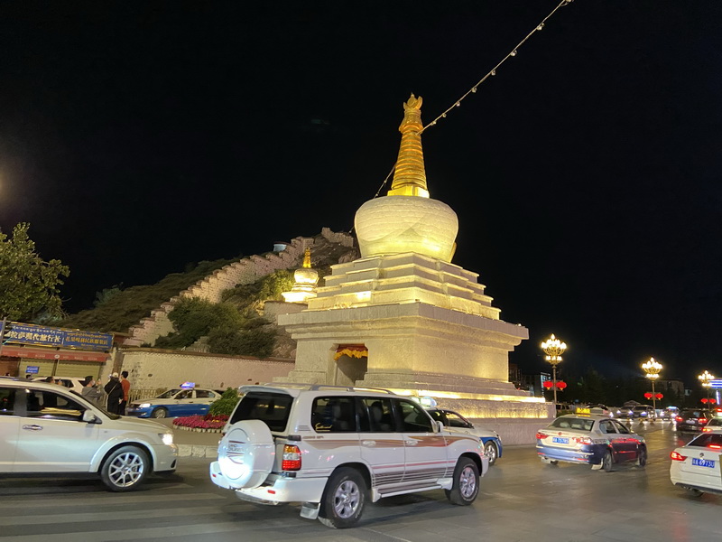 拉萨市不是非常的大,我们住宿的地方距离广场步行40分钟左右,打车15元左右就到了,夜里风挺大挺凉,需要穿外套戴帽子,否则这里的风会吹的你脑袋疼。