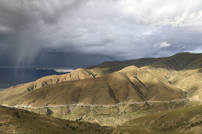 我们一路上后面远处有云朵在不断靠近,远远可以看到云层下雨,我们翻越海拔4990米的岗巴拉雪山垭口后,便见如蓝宝石般透亮的羊卓雍措(简称:羊湖),羊卓雍措西藏三大圣湖之一,美丽的湖光山色一定会让你陶醉。在羊湖拍照,一定要穿鲜的衣服,有种置身油画的感觉。