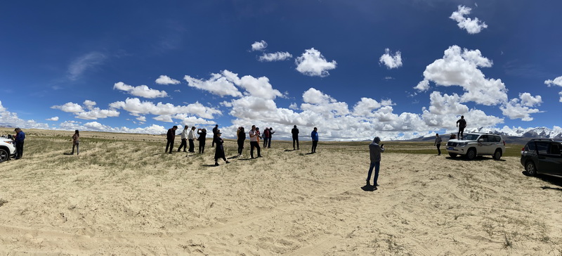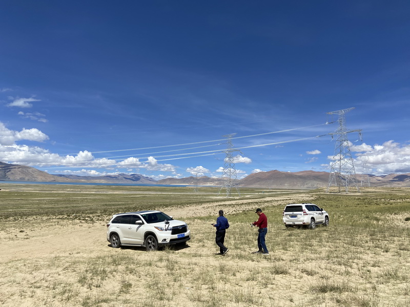 远处连绵的雪山,若得摄影团队和我们都下了公路前来这里拍照