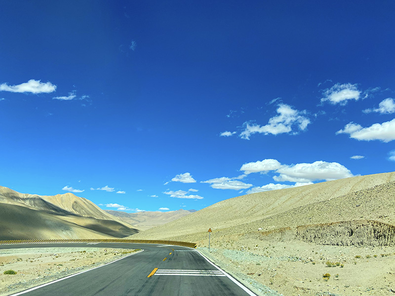 在古格王朝逛完拍照后,我们就导航向狮泉河出发,在这里我们被高德导航给害惨了,我们从古格王朝出来,驾车导航路线,开始一段后可以感觉到与之前进来的路不同,因为我们之前的功略也表示的是来回不是一条线路,所以也没多想就继续开了,中间翻了两座海拔4000多米的山,到了一个边境检查站,检查和登记我们的身份,问清我们去什么地方,我们说去狮泉河,边检员说去狮泉河走这条路绕远了,还是原路返回札达县城然后走昨天的路那是最近的,当然没把吓晕过去,我们也不知道这条路什么情况,就按照他们的指导,原路返回到县城,这一折腾已经到中午了,正好在札达县城吃中午饭,午饭后然后凭借记忆走来时的道路,因为导航一直让走刚才走错的道路,后来到了中间路上手机是没有信号,无法重新计算路线导航,所有就一路沿着来时的路开到进入札达县的公安检查站,把G565国道开完,返回219国道继续向西开往狮泉河方向。
