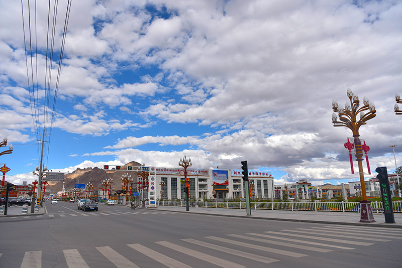 狮泉河镇很小,一头石雕狮子矗立在城中心的环岛中央。也许这就是小镇的象征了。以环岛为中心,四条马路向外延伸:南面为商业街,东西为区直机关和军分区驻地,北面是通向日土县及新疆方向的公路。城中的商店、餐馆临街而开,公用电话随处可见,路边楼房、平房错落有致。