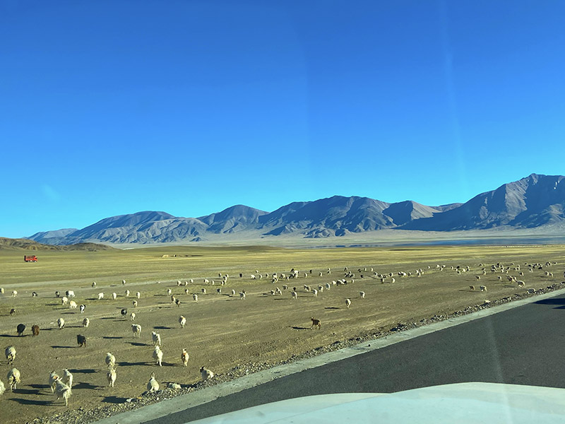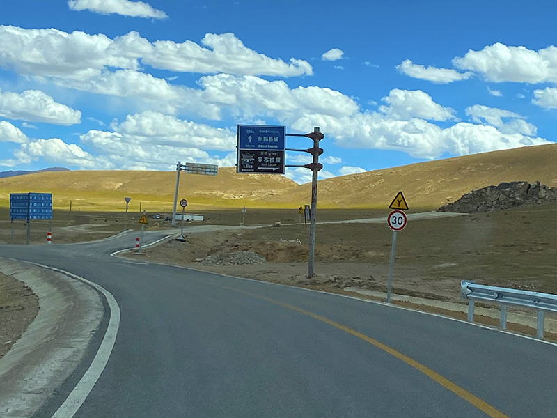 中午我们到了改则,在改则县县委跟前的四川饭店吃饭,炒菜米饭,其中有这样一段对话,老板:“有丝瓜炒蛋吗?”,服务员:“稍等,我去隔壁买菜哪里看一下今天有没有丝瓜”。县城不是很大,公路直接从街上穿过,就把车停在路边,选择一家饭店吃饭即可。注意,停车只能停在路南侧,路北侧停车会被拍照罚款的。在改则吃饭休息后我们就继续向前开进,一天基本都在开车中度过。